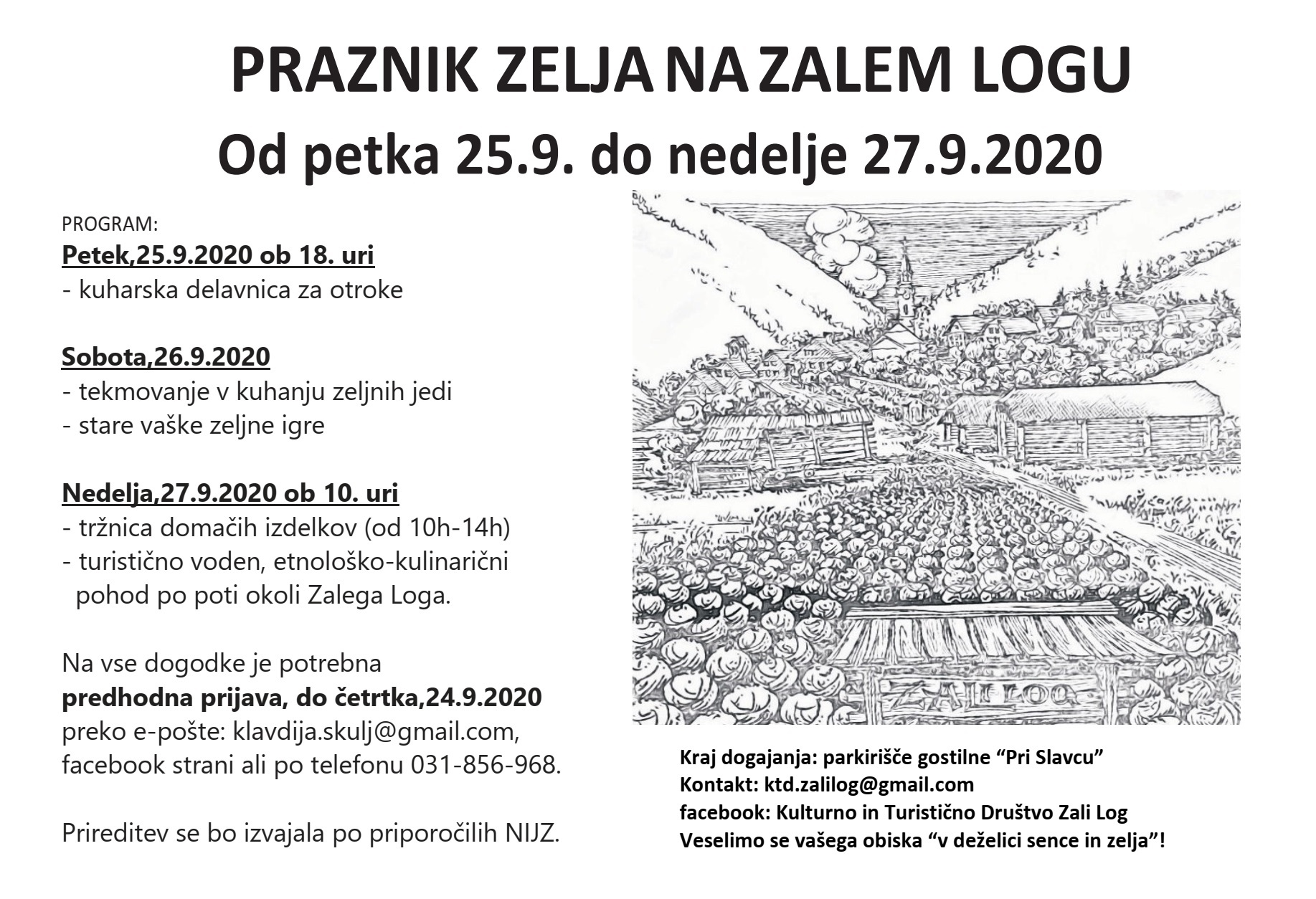 v nedeljo, 27.9.2020 na tržnico domačih izdelkov in pridelkov ter na etnološko - kulinarični pohod po poti okoli Zalega Loga.
