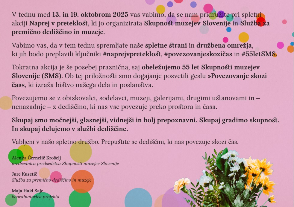 Program akcije Naprej v preteklost najdete na povezavi https://online.fliphtml5.com/mbaxd/fzbr/#p=1