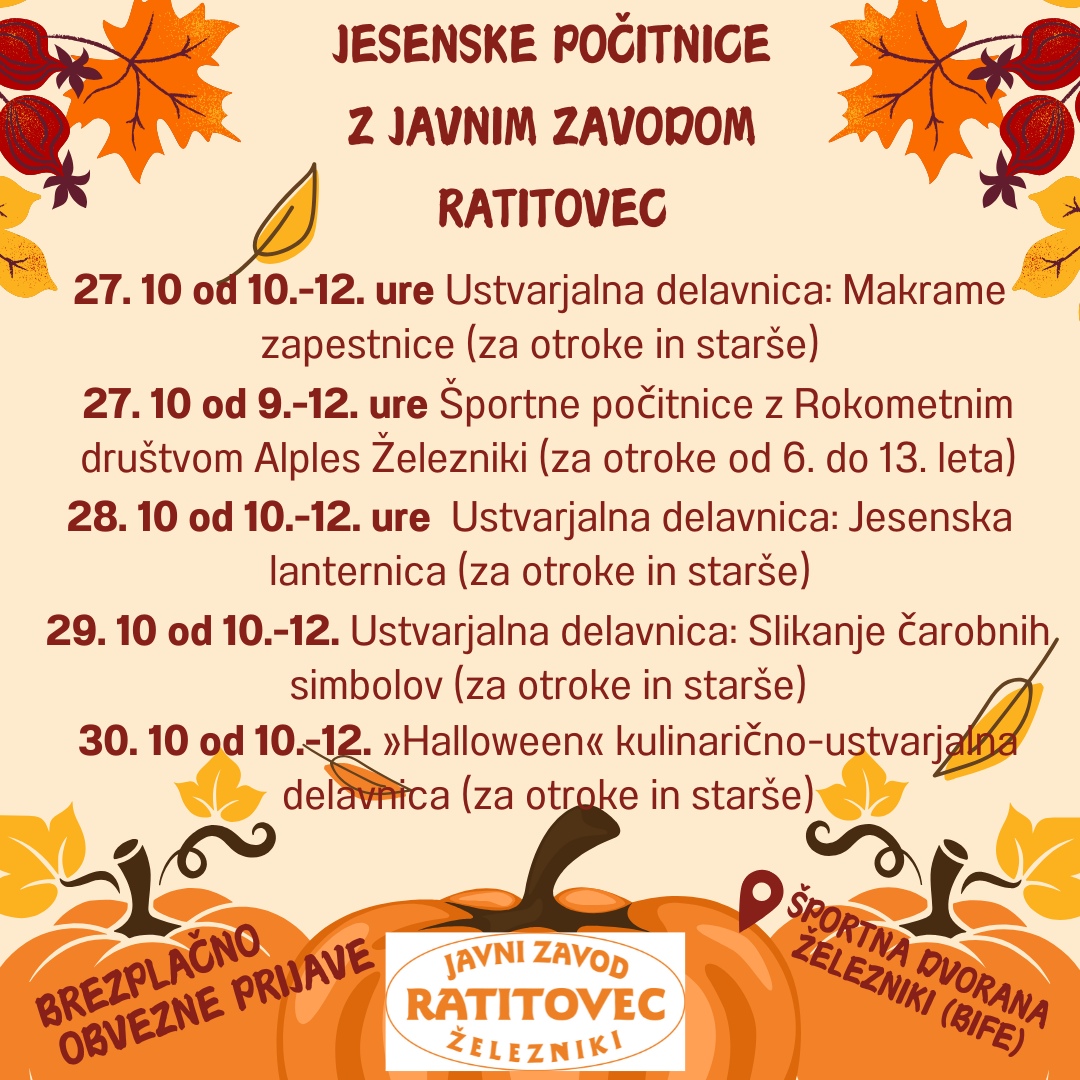 Jesenske počitnice z Javnim zavodom Ratitovec 2025