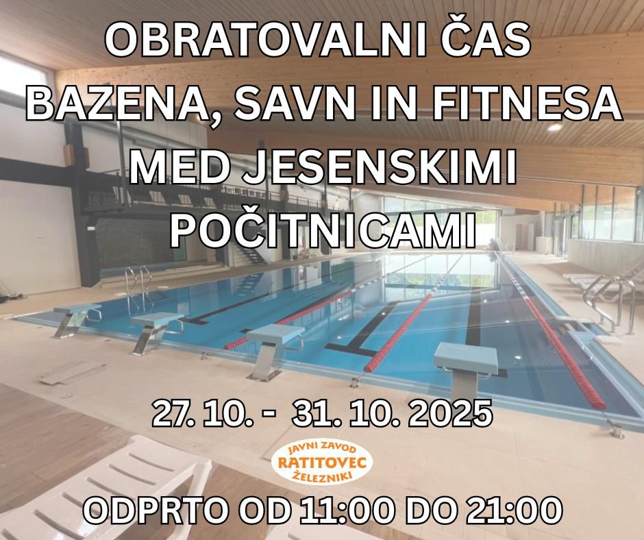 Bife na bazenu je 1. novembra 2025 odprt od 9. do 15. ure, medtem ko je bazenski kompleks ta dan zaprt. Ostale dneve je odprto po urniku.
