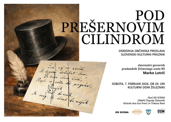 Vabljeni na osrednjo občinsko proslavo ob slovenskem kulturnem prazniku, ki bo v soboto, 7. februarja 2026, ob 20. uri v Kulturnem domu Železniki.
